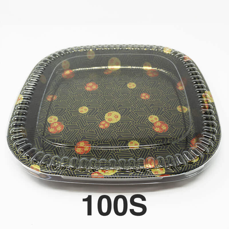 100S Square Flower Pattern Plastic Party Tray Set 10 1/8" X 10 1/8" X 1 5/8" - 120/Case