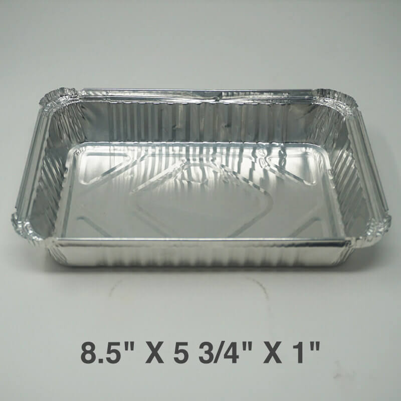 768-30 1.5 lbs. Oblong Shallow Aluminum Foil Pan with Lids 8.5" X 5 3/4" X 1" - 500/Case