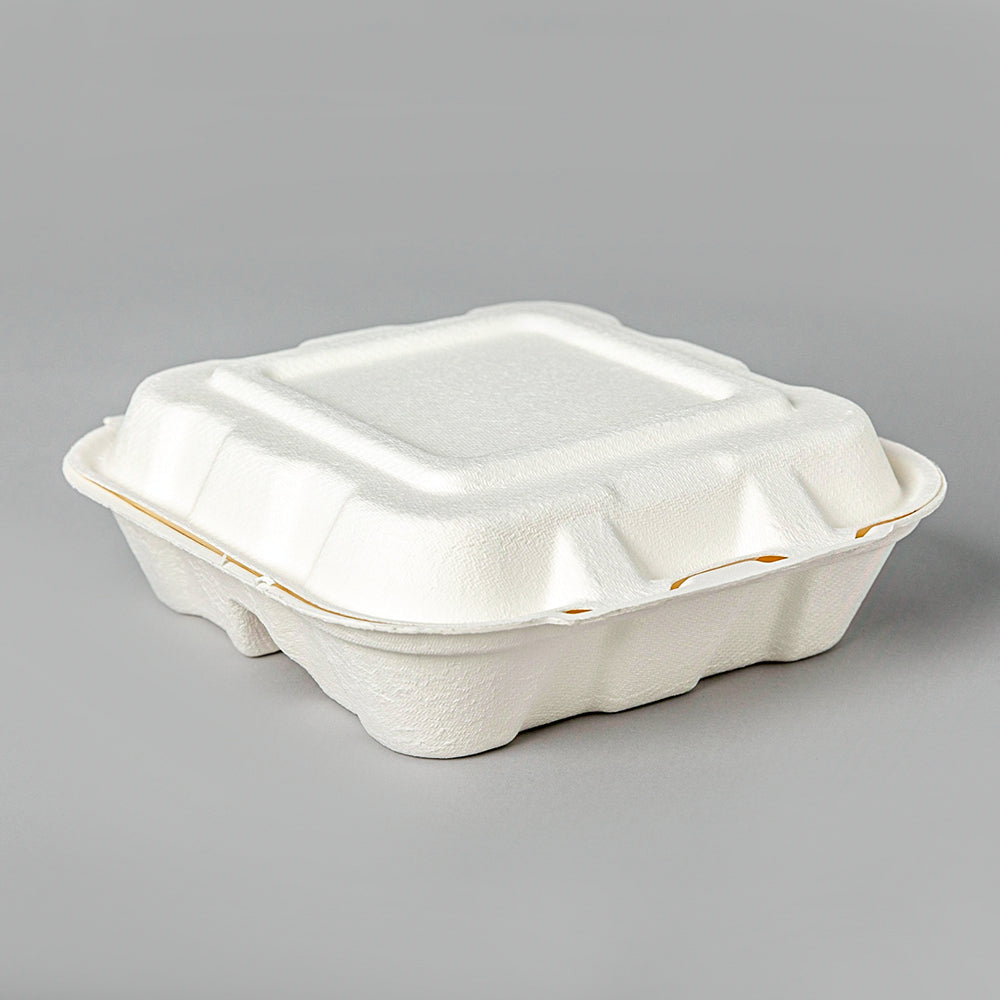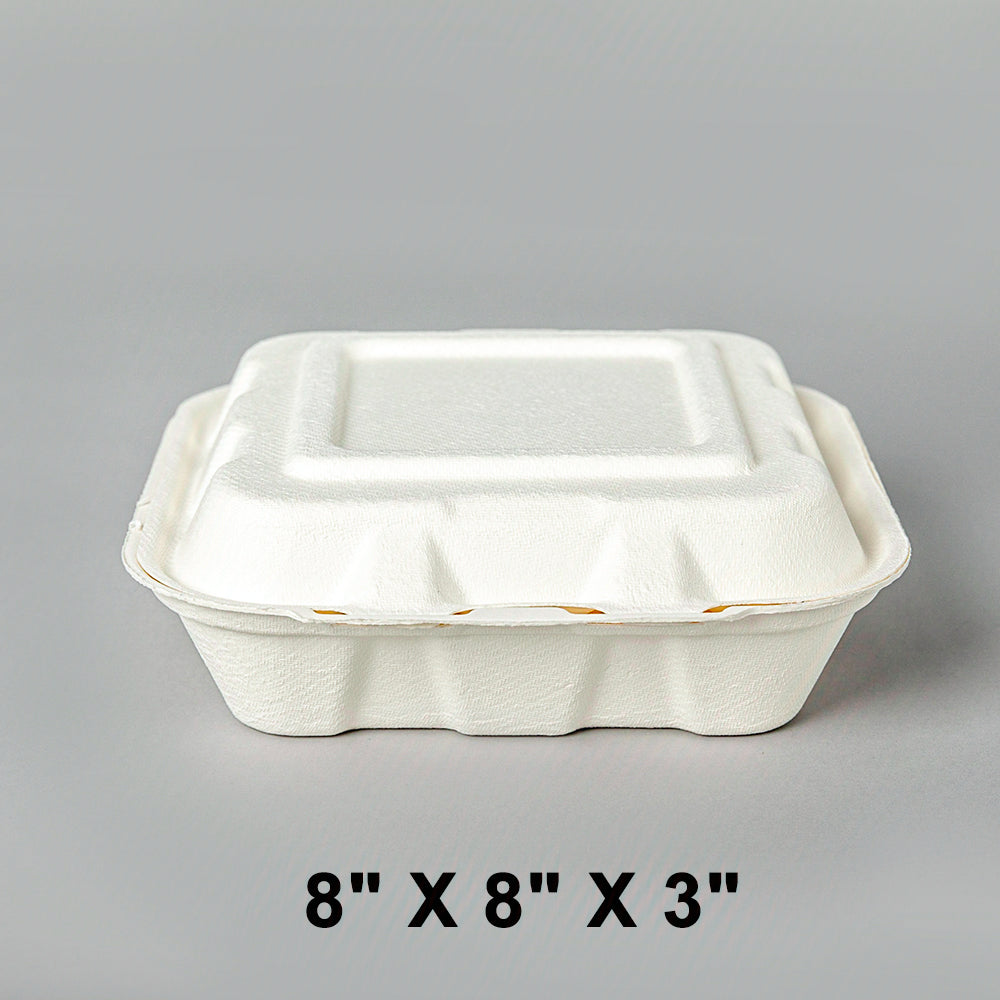 AHD Square White 3 COMP. Compostable Hinged Container 8" X 8" X 3" - 200/Case