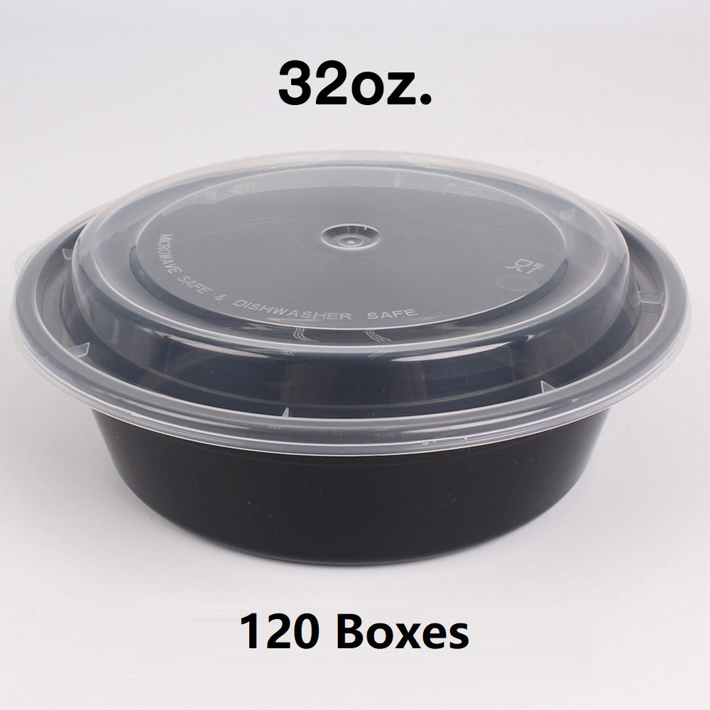 [Bulk 120 Cases] 32 oz. Round Black Plastic Container Set (729) - 150 Set/Case