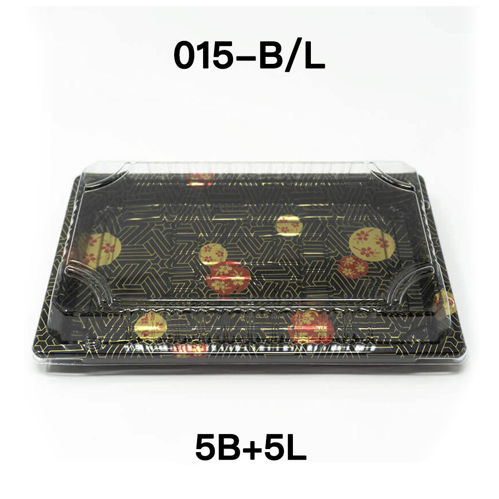 [Bulk 5 Sets] 015 Rectangular Black Plastic Sushi Tray Container