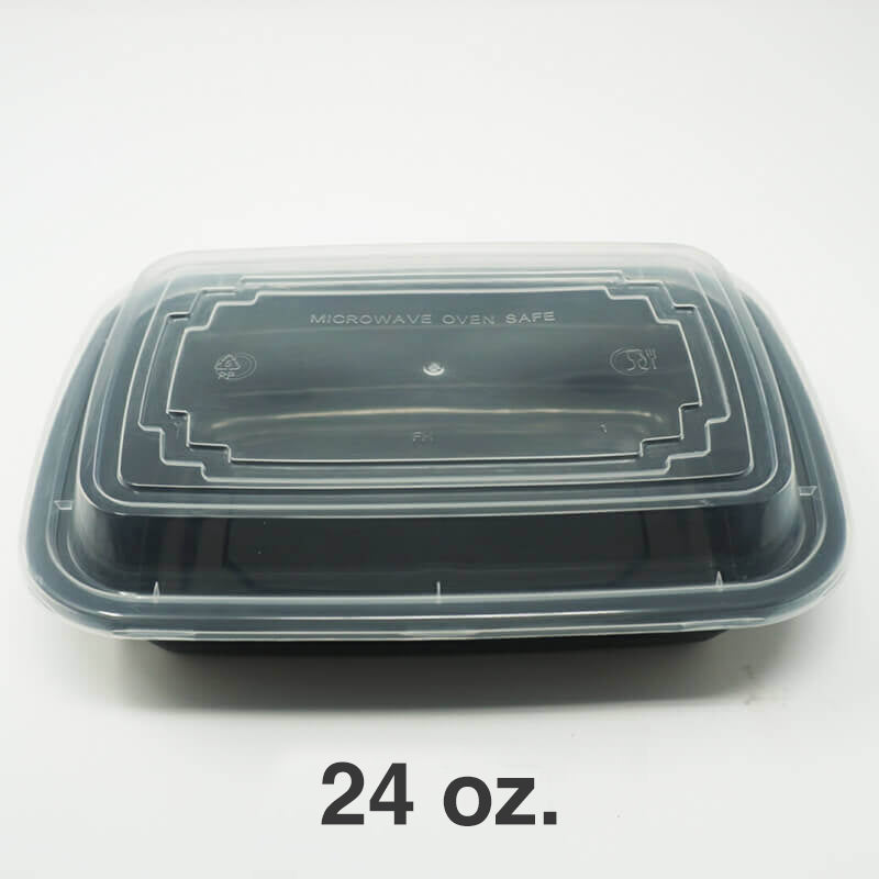 FH 24oz. Rectangular Black Plastic Deli Container Set - 150/Case