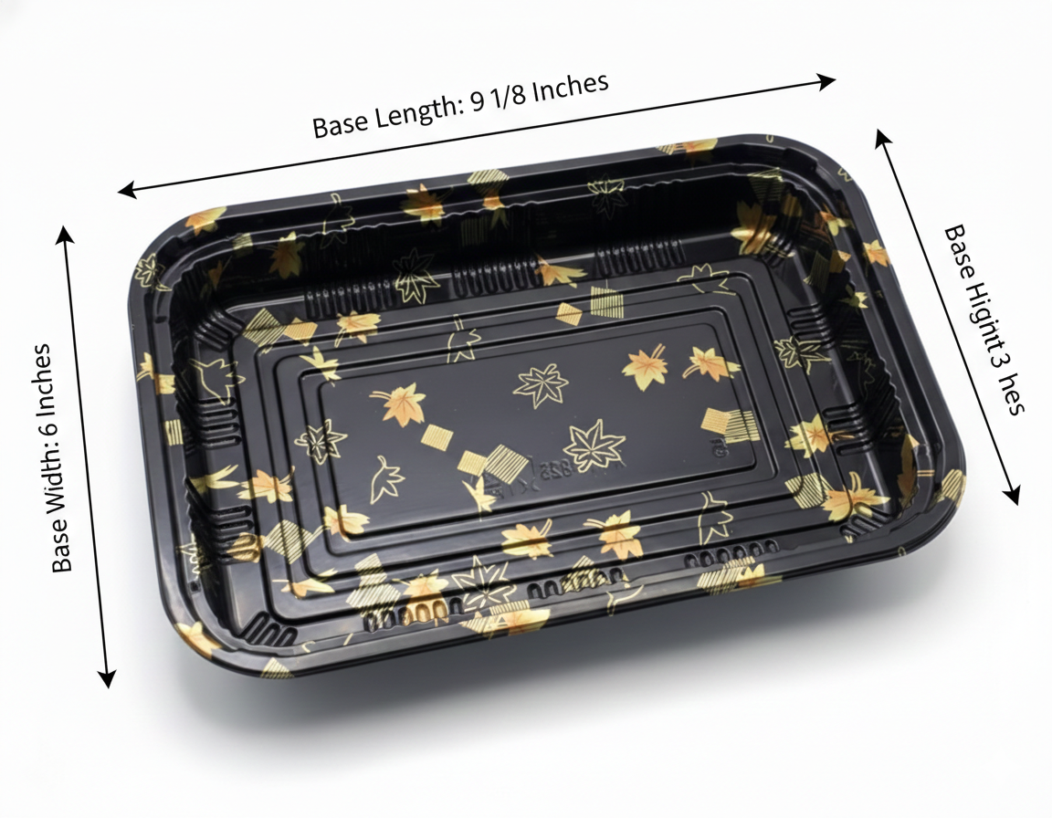 G-825 Rectangular Black Plastic Lunch Box Set 9 1/8" X 6 3/8" X 1 3/8" - 300/Case