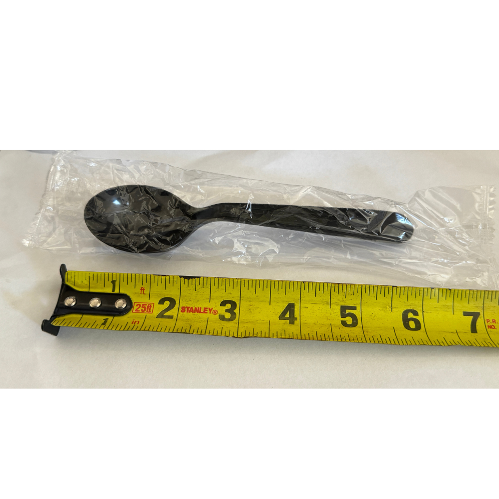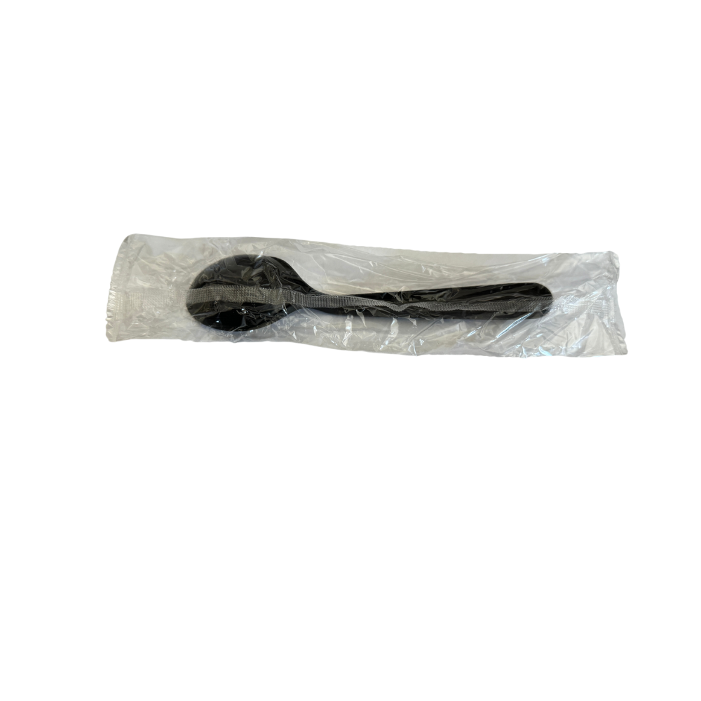 6" Heavy Black Plastic Spoon (Individual Warp) - 1000/Case