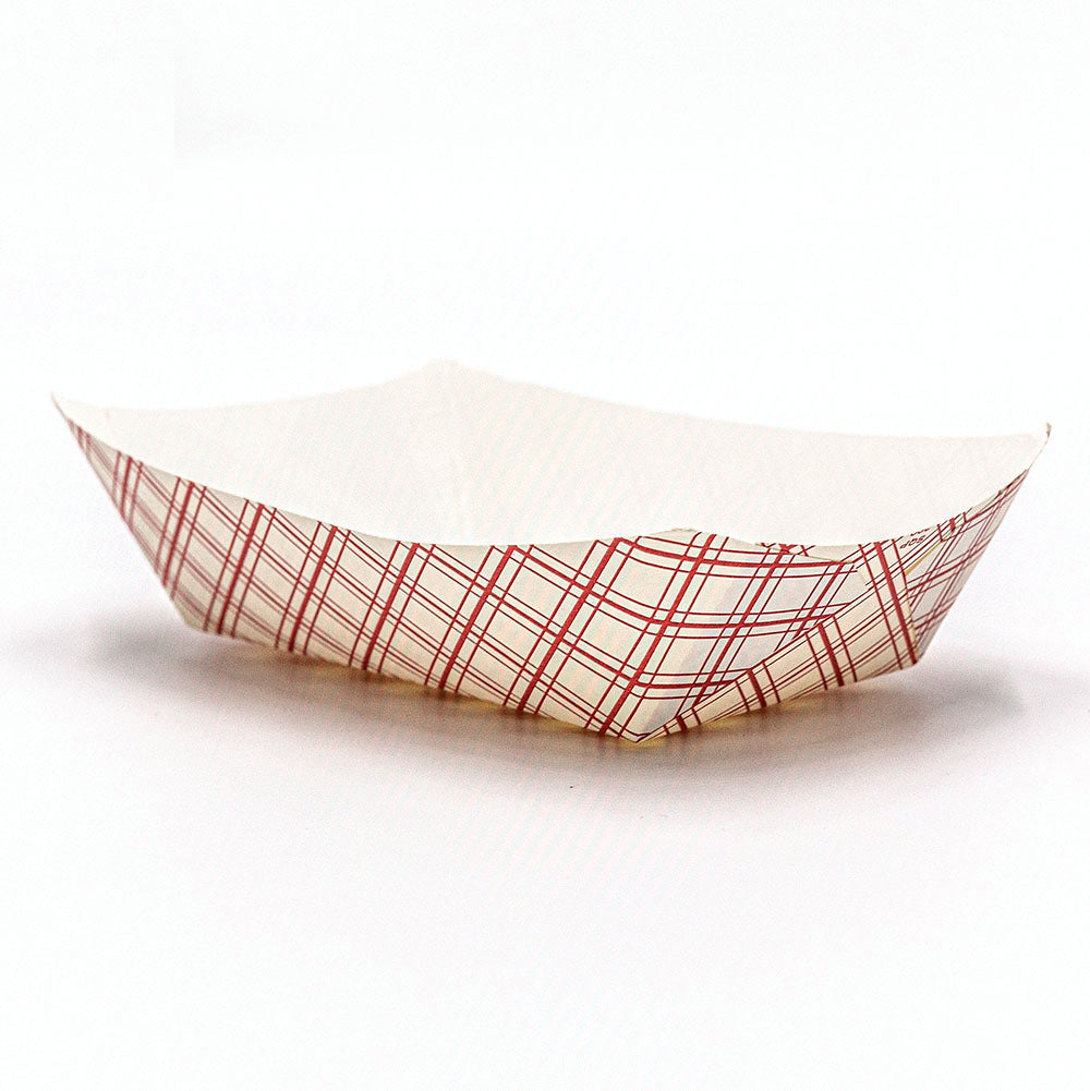 Rectangular Red Check Paper Food Tray 3 lb. - 500/Case