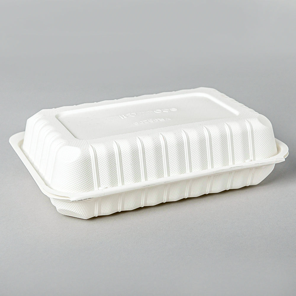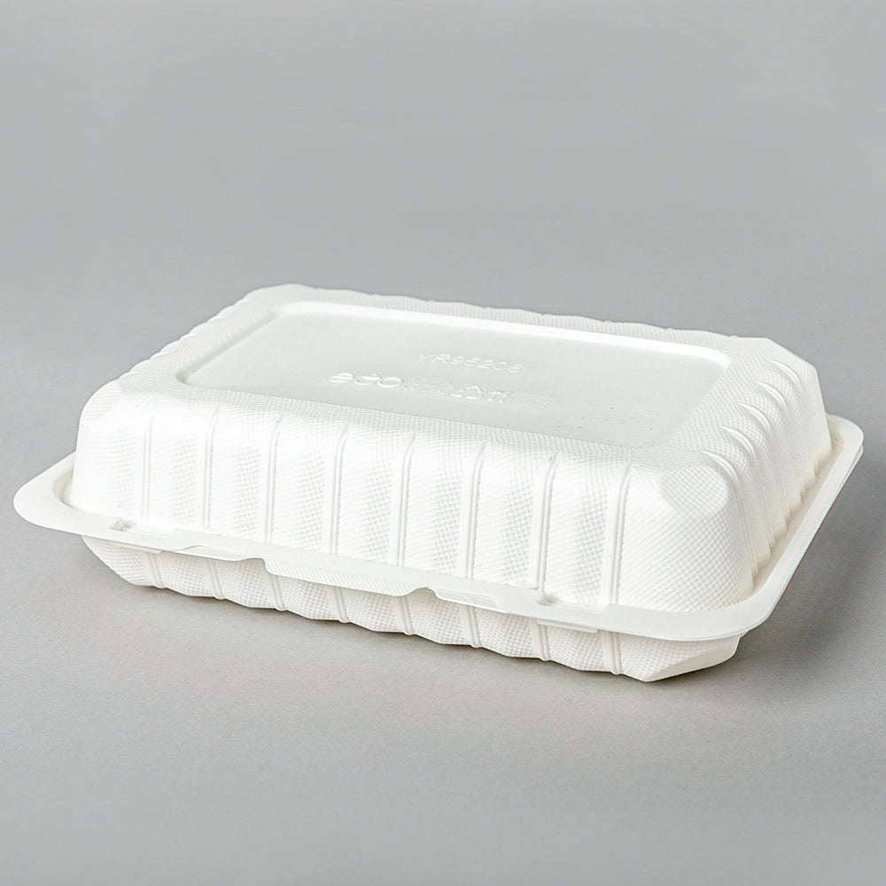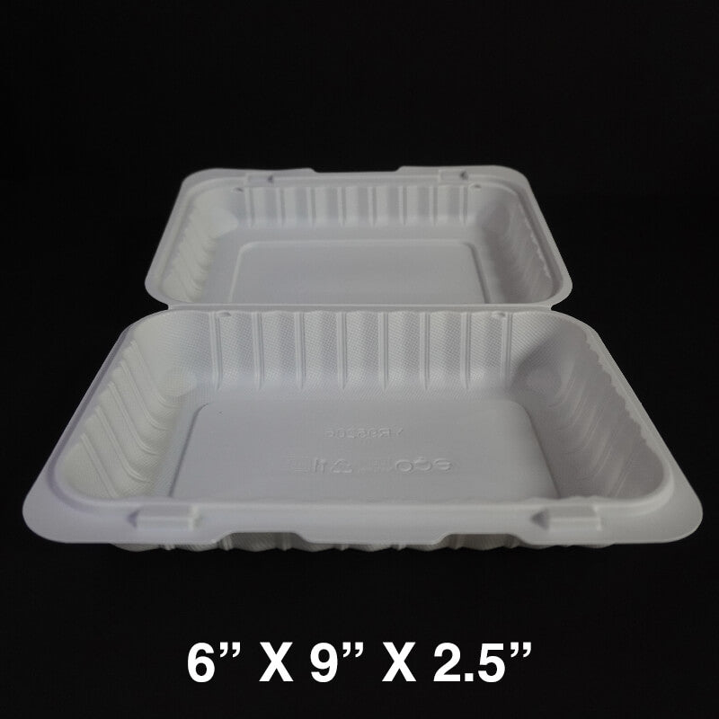 Rectangular White Plastic 1-Compartment Hinged Food Container 6" X 9" X 2.5" - 150/Case