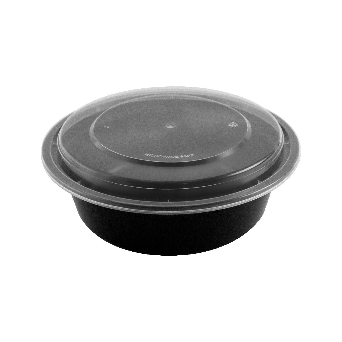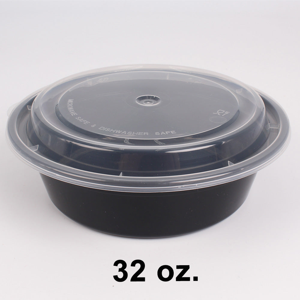 Round Black Plastic Container Set 32 oz. (729) - 150/Case