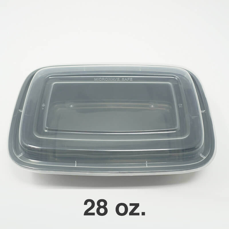 SD 28oz. Rectangular Black Plastic Food Container Set - 150/Case