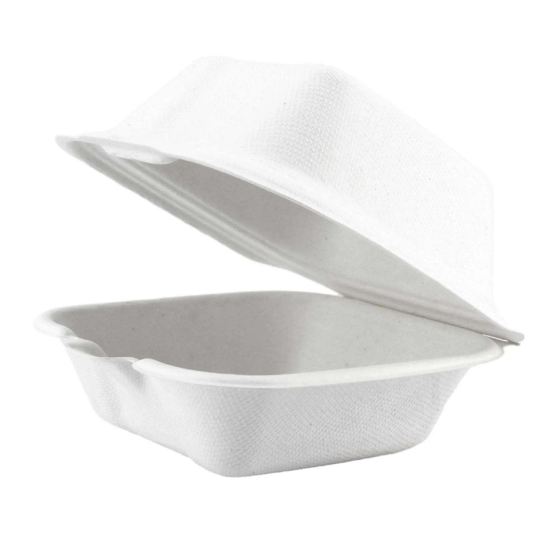 AHD Square White Paper Hinged Food Container 6" X 6" - 500/Case