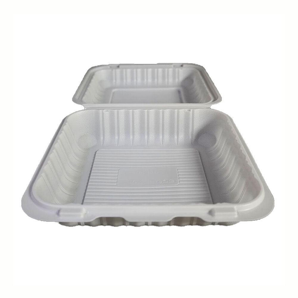 Square White Plastic 1-Compartment Hinged Food Container 8" X 8" X 2.5" - 150/Case