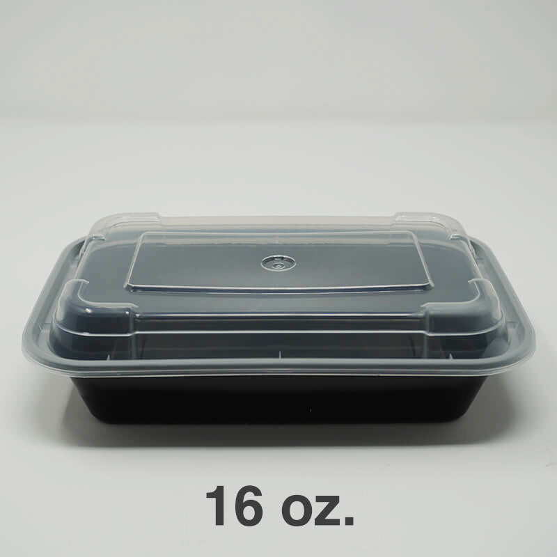 16 oz. Rectangular Black Plastic Container Set (8168) - 150/Case