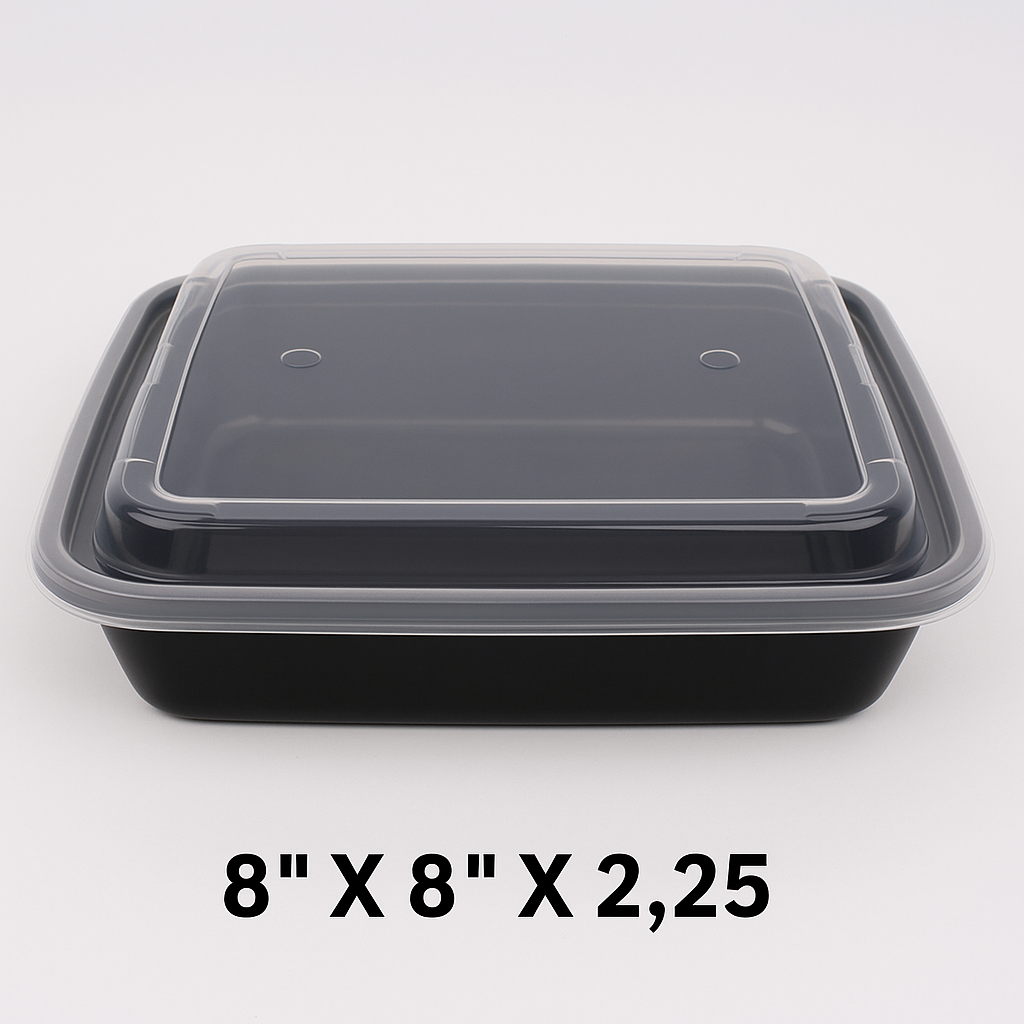 8" X 8" Square Black Plastic Container Set (8148) - 100/Case