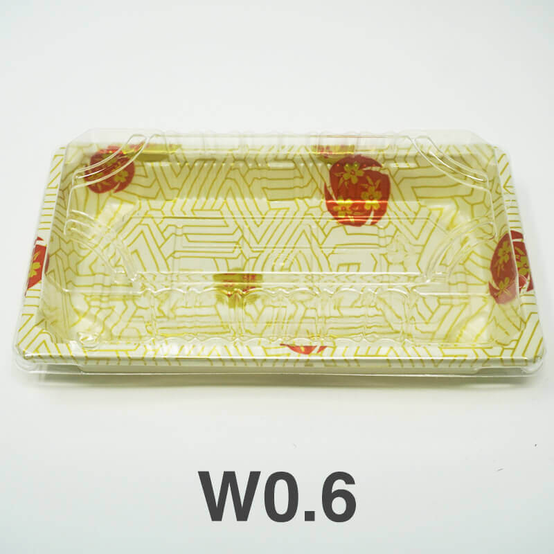 W0.6 Rectangular White Plastic Sushi Tray Container Set 6 3/8" X 3 1/2" X 3/4" - 480/Case